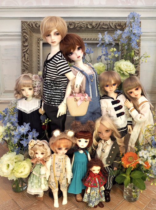 背の順 左からimda1.7、2.2、2.6、3.0、4.3 これでimda5.3以外のimda全員の背の順!! 併せしようと言ってたわけじゃないのに揃ってて面白かった🤣 #サイズ違いのお人形さんのお写真が見たい #藤屋百華ドール部 #imdadoll