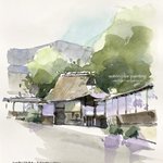 手数は最低限に。それでも絵になります。ぼくは極力描き込まない究極の透明水彩画を目指しています。suisaigajuku.com #Watercolor #スケッチ #水彩画 #水彩画ワークショップ #京都の絵画教室 #淡彩略画 #透明水彩 #京都水彩画塾 #藤田わへい