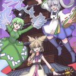 15日目 集中線にハマってます(*'▽') テキストを使ってみました。 #イラスト好きな人と繋がりたい #イラスト好きさんとつながりたい #デジタルイラスト #蘇我屠自古 #物部布都 #小さくなった #東方イラスト