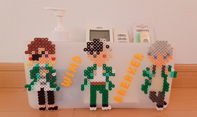 i wanted to keep things tidy around my bed so i made the #WINDBREAKER storage item🌃✨ #ウィンブレ #アイロンビーズ #pixelart #HayatoSuou #蘇枋隼飛 #HarukaSakura #桜遥 #RenKaji #梶蓮