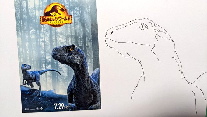 Before After Jurassic World:BLUE #JurassicWorldDominion #JurassicWorld #blue #ジュラシックワールド #イラスト #お絵描き #蘭のイラスト記録帳