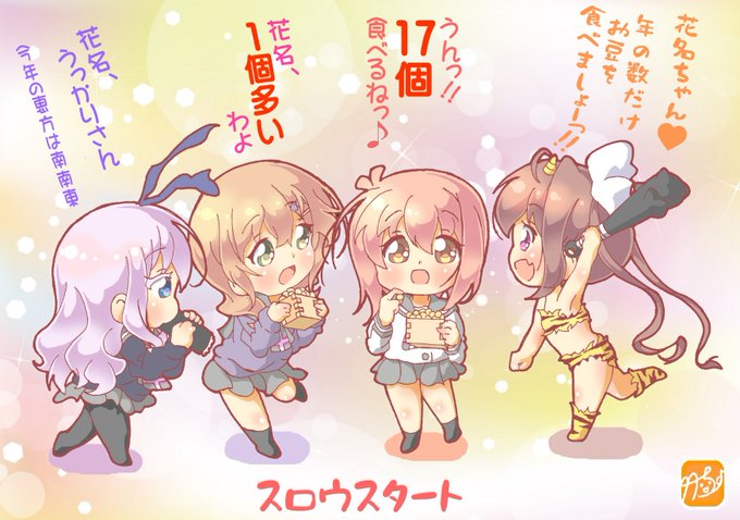 今日は節分だから、 いつものを貼りますね✨ 花名ちゃん、秘密をみんなに 受け入れられて良かったね💞 #スロウスタート #節分 #虎ビキニ #絵描きさんと繋がりたい #私の絵柄が好みって人にフォローされたい