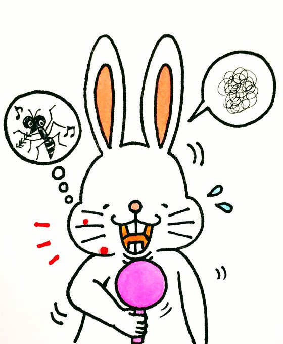昨日、久々に顔を蚊にさされました!前回はおでこをさされましたが、今回は頬っぺたを2ヶ所です😂 最近の蚊は、必殺仕事人みたいですね💦食事に夢中の間に、蚊にさされないようにご注意を!😋 #イラスト #前歯うさぎ #イラスト好きさんとつながりたい #絵描きさんと繋がりたい #虫刺され #蚊