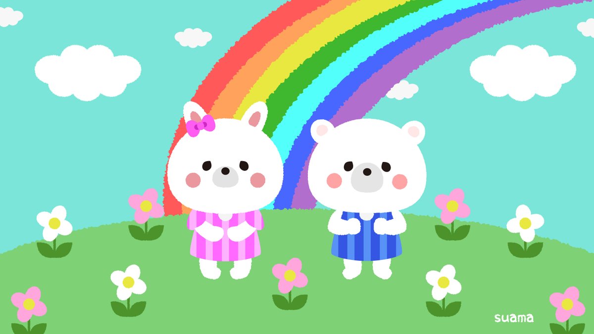 久しぶりの雨ですね☔ 今日は雨イラスト???いいえ違います!! 白くまくんとうさぎちゃん #虹イラスト!! 今日も あと半日ファイト!! #イラスト #絵 #ゆるい絵 #動物イラスト #春の創作クラスターフォロー祭り #絵描きさんと繫がりたい