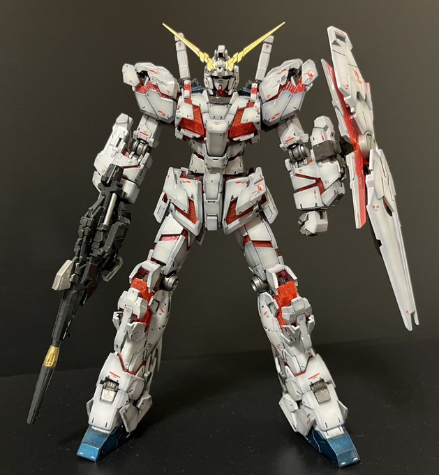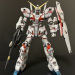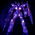 MGユニコーン。蛍光塗料とブラックライトで遊んでみる。サイコフレームが鮮やか。 #蛍光塗料 #ブラックライト #ガンプラ #ガンプラ好きと繋がりたい #ガンプラの画像貼るとRTされると聞いて #ユニコーンガンダム