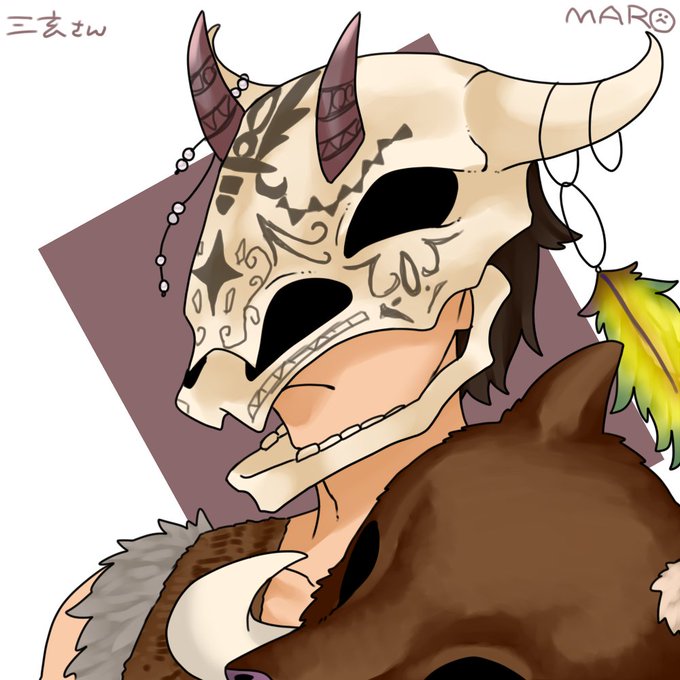 #蛮族壁画 @sangenV363 二人目!蛮族の三玄さんを描かせていただきました! 骨のデザインがかっこよかったのでタッチを変えて描いてみました。ありがとうございます! twitter.com/Cknkam1/status…