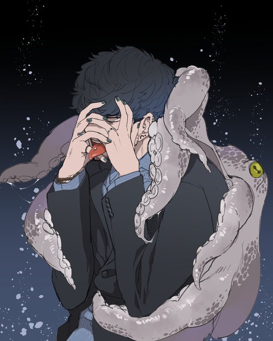 🆕 【使徒降臨シリーズ:蛸の使徒】🐙 第五使徒。海辺の町に現れ触手で人間を捕らえては穢れを一つ祓ってあげる。こちらから追うと逃げる。 第四→第五で一気に冬から夏になりました(笑) #イラスト #みんなで楽しむTwitter展覧会 #創作の狼煙 #私の絵柄が性癖に刺さる人に届いてほしい #蛸