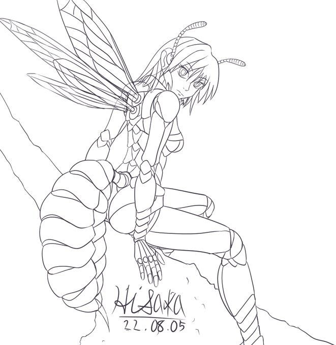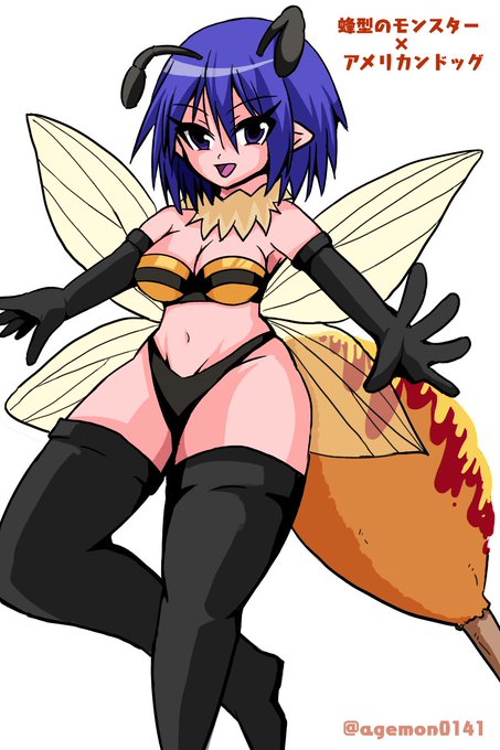 こんばんは。今日はアメリカンドッグの日なので下腹部をアメリカンドッグにされてしまった蜂型のモンスターを描きました。個人的に描くのが難しいキャラのひとりです。 #オリジナル #イラスト #絵描きさんとつながりたい #アメリカンドッグの日 #今日は何の日 #蜂娘