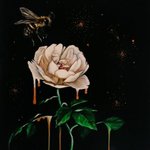 【メルティフラワー/白薔薇】油絵 白薔薇の花言葉:誠実 #illustration #薔薇 #蜂 #アナログイラスト #絵描きさんと繋がりたい #みんなで楽しむTwitter展覧会 #絵柄が好みって人がいればいいなぁ