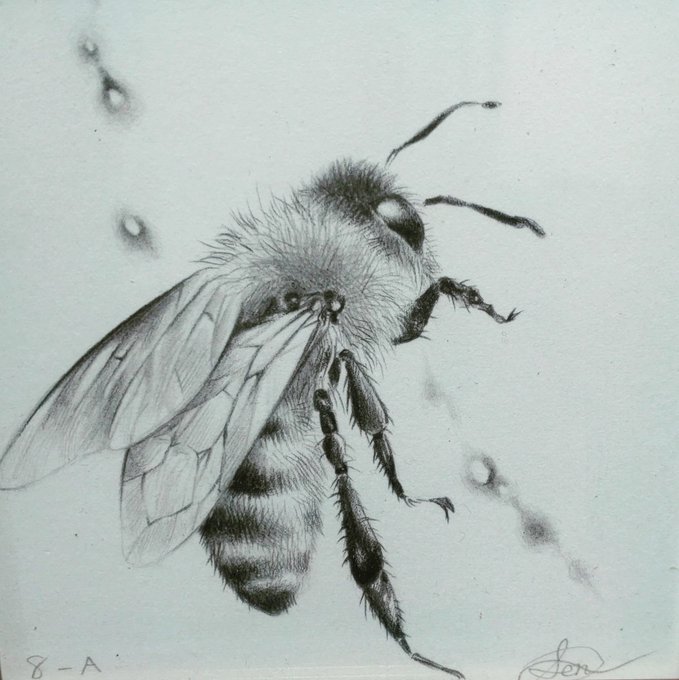 最近は蜂ばかり描いています。 養蜂家に取材行きたいけれど、 応じてくれる所あるのかな…🐝 . #蜂 #油絵 #アナログイラスト #絵描きさんと繋がりたい #illustration #鉛筆画 #Pencildrawing