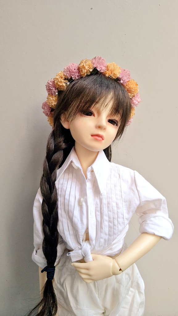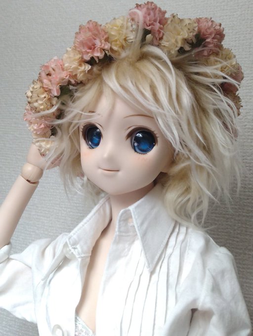 DDにもファーウィッグは似合いますし花冠被せてもボリューム感が丁度良いです。 次回のアイドールは写真のお花のように小振りなお花中心でLサイズMサイズ揃えていこうと思います。 #アイドール東京 #蜜月冠 #dollfiedream #ドルフィードリーム