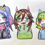#筆arts #描いたよtailちゃん #蜜瞳のコンタクト サメサメシスターズ ちゃん達が いまの〜みつめちゃんの 推しサメなんだー( ु ›ω‹ ) ु♡ (みつめちゃん写ってるのは ほぼ壁なんで、気にしないでくだちぃ)