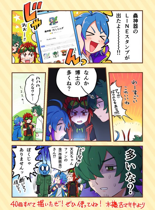 【ご報告】 #蟲神器 のLINEスタンプだとォーーーッ❗️❗️❓ キャラクターたちをコミカルにたくさん描きました🥳 ぜひぜひ使ってね!🪲🦋🕸️🐞🐝🐜 嬉しくて漫画も描きました🎶🕺💃🕺💃🎶 twitter.com/mushijingi/sta…
