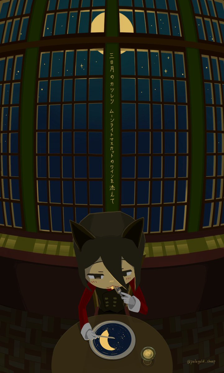 突然ですが、最近とても気になっているVtuber、空想料理店の蟹さんのファンアートです。 三日月のカツレツを食べている蟹さんを描かせて頂きました...🌙 三日月の食べ方 youtu.be/sDrS3CDBp_Y どの空想料理動画もあまりに素敵で創作意欲が掻き立てられます。 (よければクリックで全体を! #蟹拓