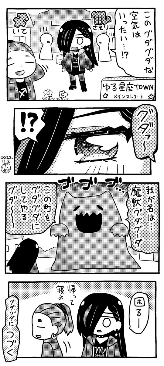 ゆるい星座擬人化4コマ、今月描いたさそり座さん主役編をまとめてみます。vsグダグーダ編その1(その3まであります) #ゆる星座女子 #4コマ漫画 #漫画が読めるハッシュタグ #絵描きさんと繋がりたい #創作クラスタさんと繋がりたい #星座擬人化 #蠍座