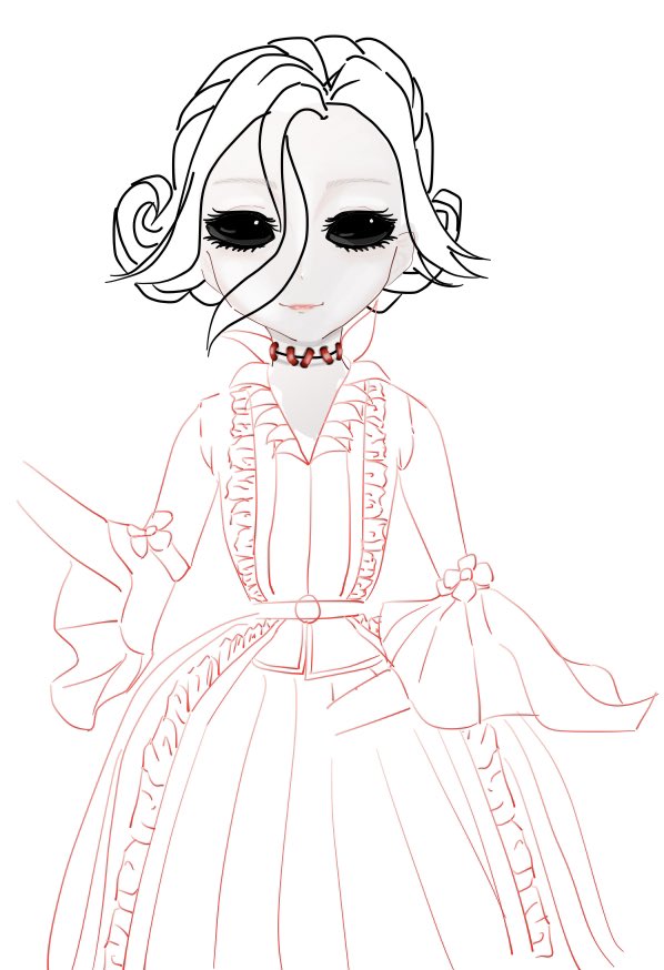 今日の成果(?) 1回心が折れたけど頑張って描いてる マリー様の美しさは自分の実力では表せなさそうだ… #イラスト #イラスト練習 #毎日投稿きらめく思い出 #絵柄が好みって人がいたらいいなぁ #第5人格 #マリー様 #血の女王