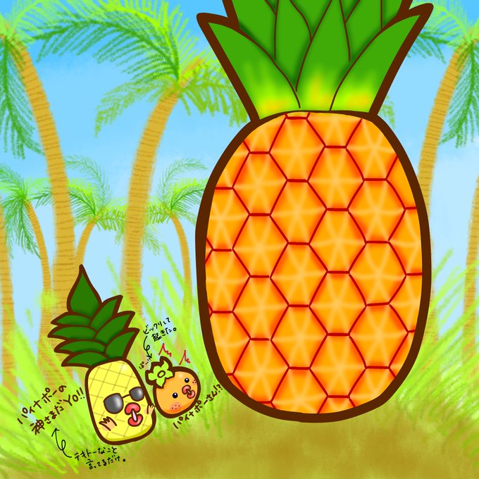 パイナポーさん⁉︎🍊 ぽー⁉︎🍀 パイナポーの神さまだYO!!🍍 #目的に近づいてきた #なごぱいなっぷるぱーく #行きたい #絵 #イラスト #illustration #illust #drawing #ゆるキャラ #日本列島ゆるキャラさんの旅 #一コマ漫画 #見ていただきありがとうございます