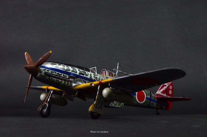 タミヤ1/72「三式戦闘機 飛燕Ⅰ型丁」完成しました! 今回、特徴的な迷彩は別売りのデカールを使用してみました。Tramokei さん(@tramokei)、今回も素敵な企画ありがとうございます~。 #行く年来る年飛燕祭り #行く年来る年飛燕祭り完成