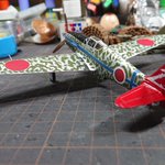 川崎 三式戦闘機 飛燕I型丁 飛行第244戦隊(第159振武隊)高島俊三少尉機 汚すのがもったいない感じ…。 この辺で、完成といたします。 やった〜終わった〜。 #行く年来る年飛燕祭り #行く年来る年飛燕祭り完成 写経のように、無心で模様を描きました…。