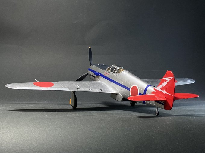 アリイ 1/48 飛燕 完成しました! 付属のデカールでは迷彩塗装機しか作れなかったので神戸に展示されていた機体のイメージで作りました。 貼り線は縦と横で太さを変えてみましたが縦の線が細すぎましたね。 主催のトラさんありがとう! #行く年来る年飛燕祭り #セーブザマナティー