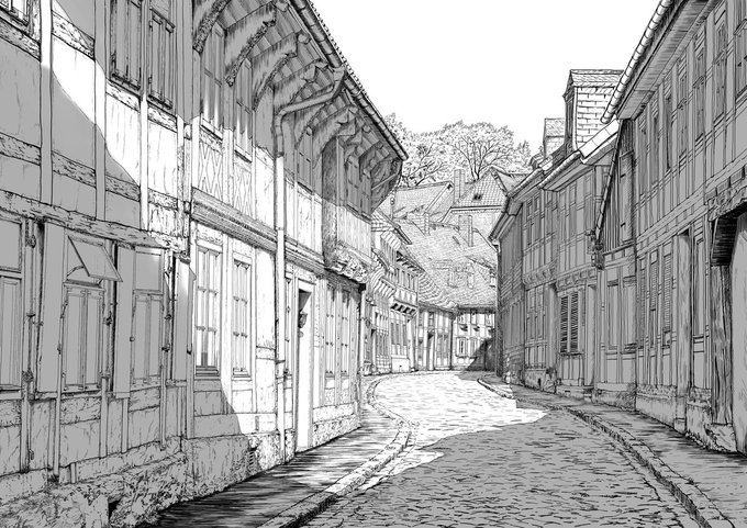 オリジナル創作漫画の準備中 ・街の習作1 #イラスト #illustraion #漫画 #マンガ #バンド・デシネ #bandedessinée #manga #art #街並み #風景写真 #背景 #コンセプトアート #conceptart