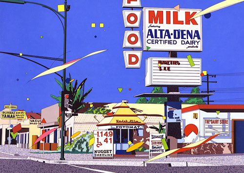 原画『THE DAIRY STORE』since 1982 #鈴木英人 #イラストレーション #イラストレーター #アート #原画 #パントーン #アメリカ #街並み #建物 #路上 #看板 #eizinsuzuki #illustration #illustrator #originalpicture #pantone #art #artworks #America #cityscape #building #road #billboard