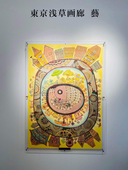 A1作品が額装されました 「だれかの夢~Another Dream~」 #特設展示 #理加子 #東京浅草画廊藝Gei #POPART #イラストレーション #鳥 #きのこ #街並み #歯車 #パステル #ホワイトワトソン紙 #SARASA #ゲルインボールペン #色鉛筆