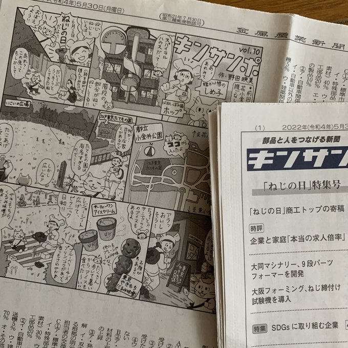 5月30日発行 金属産業新聞ねじの日特集号にて街歩きマンガ「キンサンポ」vol.10。花小金井編つづきです。neji-bane.jp #illustration #drawing #イラスト #ねじ #金属産業新聞 #街歩き #街歩きマンガ
