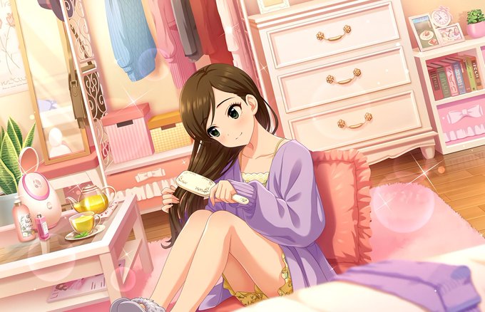 #ほっぺの斜線は可愛い #衛藤美紗希 えっ!!! キャラじゃないかもと思いつつ、興味本位で他の子の衣装のうさ耳を付けてみた所にPが入って来ちゃって慌てる担当でも描いていいんですか!!!!!?????