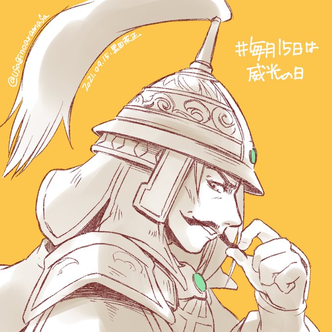 こんばんは〜!今月の袁紹さんです! 単色風味な仕上がりにしてみました。兜が難しいけど…兜もカッコイイんですよね。(兜2回言ってる。) アプリで袁紹さんが威光の日に来てくれたのが嬉しくて…どうしてもこのポーズ描きたくなってしまいました。 #毎月15日は威光の日 #袁紹