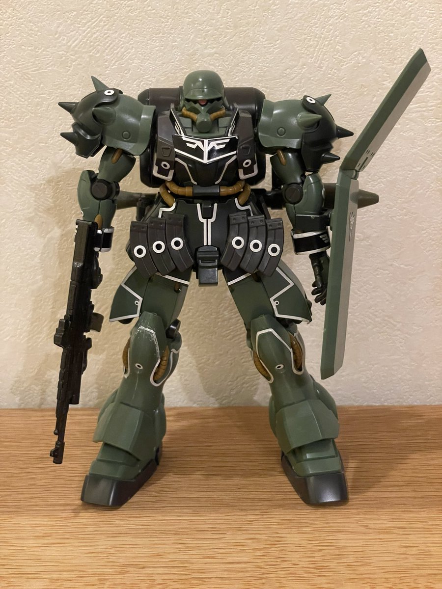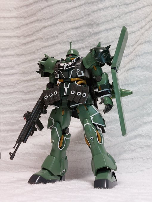 #ガンプラ #ガンプラ初心者 #ガンプラの画像を貼るとRTされると聞いて #ガンプラUC #袖付き #ガンプラ好きと繋がりたい こんにちは。袖付きのHGリゲルグです。このキットは、武器の左持ち手が付く珍しいキットです。ただ元は、一般販売のゲルググなので、作った端から色々なトコにガタが…(~_~;)