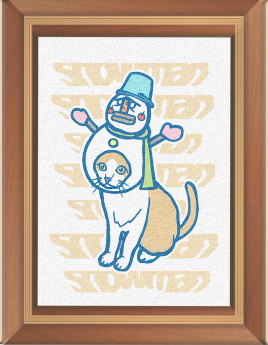 缶バッジのデザインを載せていこうのコーナー その13 雪だるま猫 #オリジナルイラスト #缶バッジ #キャラクターグッズ #オリジナルキャラクター #イラスト #かわいい #かわいいものが好き #キャラクター缶バッジ #猫 #猫イラスト #猫缶バッジ #被り物猫 #雪だるま