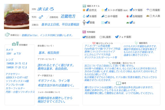 最近やりましたか年開けたので再度自己紹介 気になった方フォローさせていただきますー!! #カメラマンさんと繫がりたい #カメラマンプロフィール #コスプレイヤーさんと繋がりたい #相互さんの相互さんと繋がりたい #被写体さんと繋がりたい #レイヤーさんで自分に撮られてもいいよって天使はRT