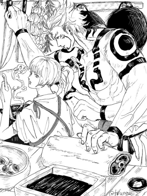 All chefs have rough hands. Sukuna x Uraume again. Yay! #呪術廻戦ファンアート #宿梅 #宿裏 #sukume #宿儺 #裏梅 #ArtistOnTwitter