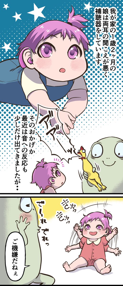 コミチのコンテストに投稿した漫画です #わたしのハッとした話 よろしければご覧下さい🙇♀️ #漫画が読めるハッシュタグ #育児漫画 #コミックエッセイ #イラスト #補聴器 #難聴 続きます (1/2)