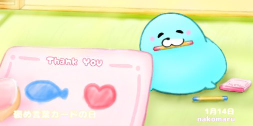 【毎日投稿*今日は何の日?】 1月14日は褒め言葉カードの日♪ 「おさかな、ありがとう。」🦭✨ #褒め言葉カードの日 #イラスト #イラスト好きな人と繋がりたい #絵描きさんと繋がりたい