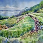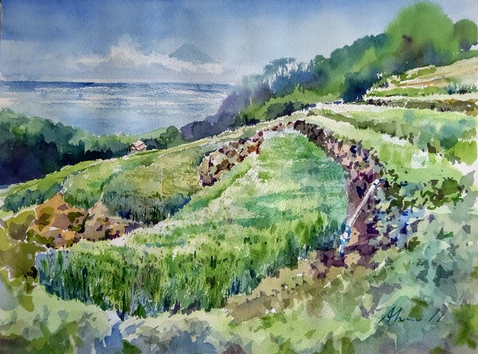 以前この時期に描いたスケッチです。西伊豆のどこかの展望スポットに登る途中、ツワブキがきれいでした。#野外スケッチ #スケッチ #透明水彩画 #水彩画 #風景画 #西伊豆 #watercolor #watercolour #outdoorsketch #fieldpaintings #izu #landscapepainting #aqurelle