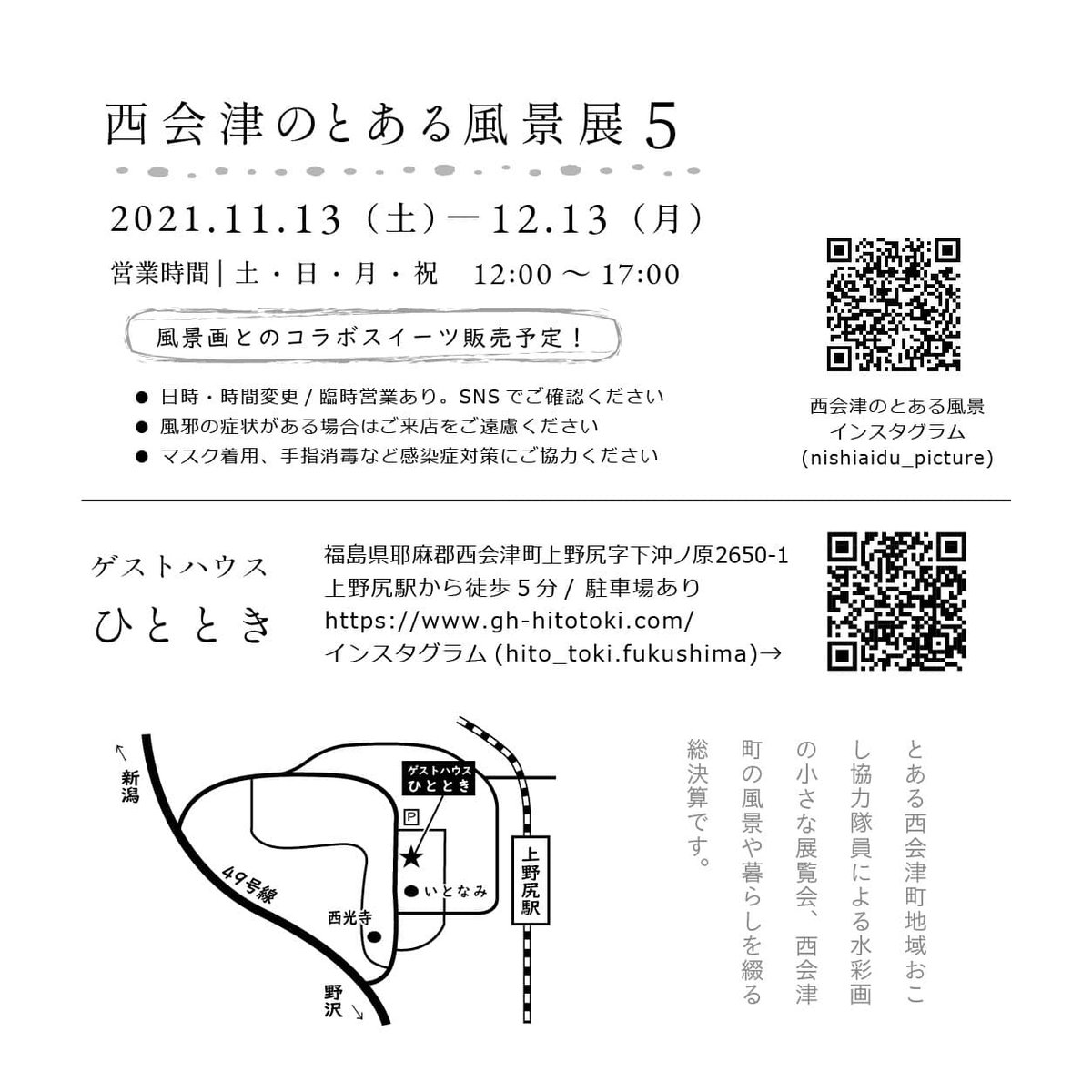【個展のお知らせ】 西会津のとある風景展5 11月13日~12月13日 12:00〜17:00 土日月祝 ゲストハウスひととき(西会津町上野尻) @gh_hitotoki #西会津 #会津 #個展 #ゲストハウスひととき #風景画 #水彩画 instagram.com/p/CVvBQrXPCXL/…
