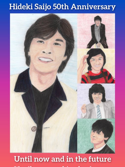 西城秀樹さん ㊗️デビュー50年おめでとう🎉 まだ少年の面影が残る 血のにじむような努力と ひたむきに向かう歌への姿勢 #西城秀樹 になってくれた 今までもそしてこれからも あなたが大好きだよ ありがとう #西城秀樹デビュー50周年 #西城秀樹デビュー記念日 #色鉛筆画 #イラスト #コラージュ