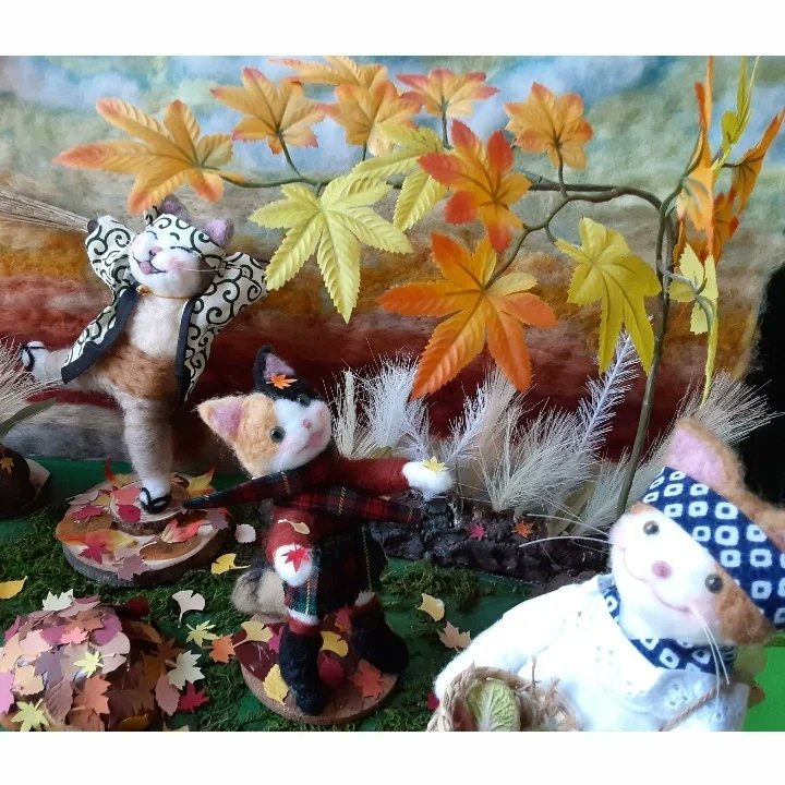 猫山家の秋🍁 昭和○○年 秋の夕暮れ時🌾 思い思いに過ごす猫山家の秋の風景🍂 昨年末、猫山家の大晦日の夜を作りましたが、その続編です~✴️ 11月12日より西宮市立市民ギャラリー 秋色パレット 作品展に出展します❗ #西宮市立市民ギャラリー #羊毛フェルト instagram.com/p/Ckc-srSJCy6/…