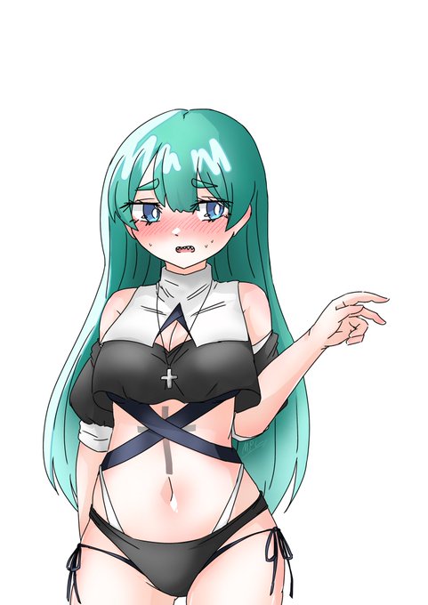 #西時の1日1絵【1076日目】 今日は新たな我がうちの子あらじおちゃん描いた メイドビキニ、三白眼、ウルフカット、猫耳、若干属性盛りまくってしもうたワイ() #絵描きさんと繋がりたい #あらじおちゃん (←新規タグ)