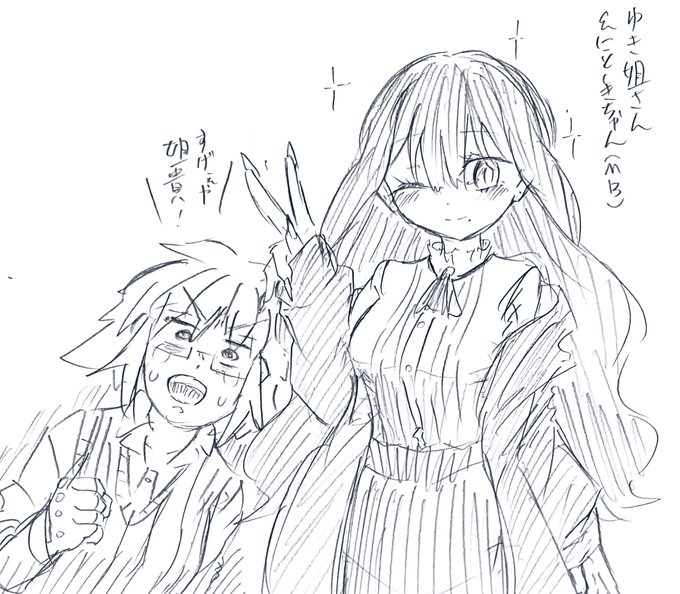#西時の1日1絵【1116日目】 今日は何気にゆき姐さんとのコテコラボは描いてない気がしたのでゆき姐さんとにとしきちゃん(マルチバース)のコテコラボ描いた 実はゆき姐さんをアナログで描くのも初めてやけど上手くいったぜ👍✨ #絵描きさんと繫がりたい #にとしきMB