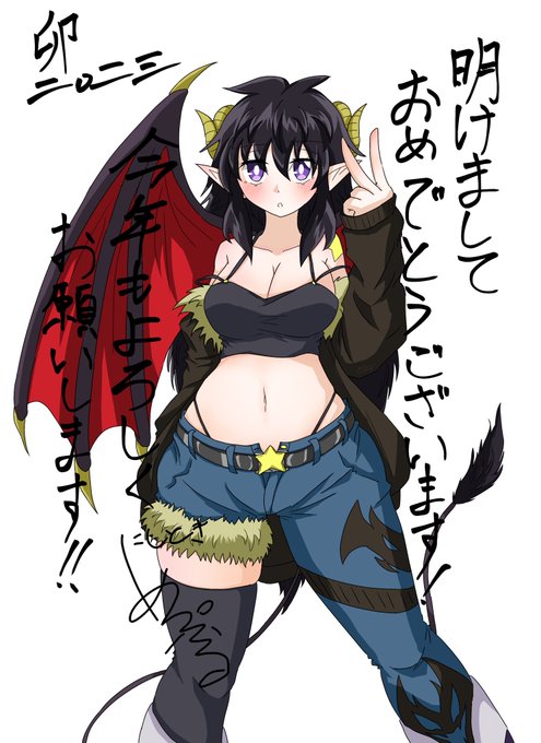 描き初めだよ! #西時の1日1絵【518日目】 新年最初の絵は女鬼さんこと柚鬼雪奈さん描いた 今年もよろしくお願いしますm(_ _)m #西時よカラーを描け #絵描きさんと繋がりたい #柚鬼雪奈