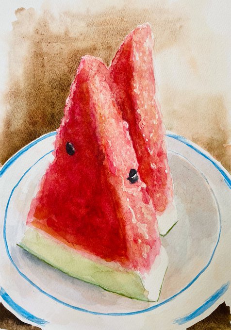 ちぎり絵で作った作品です。 「スイカ 食べよう」 #イラスト #オリジナル #紙アート #イラスト好きさんと繋がりたい #西瓜 #スイカ #illustration #watermelon #paperart #art