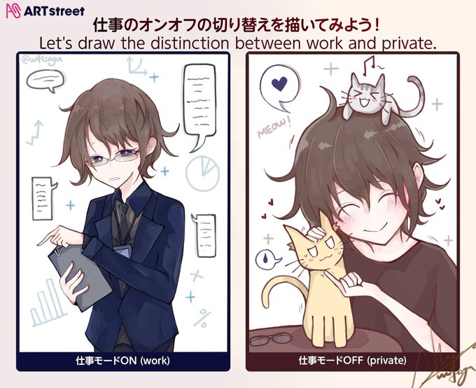 WORK! VS PRIVATE! medibang.com/picture/q72204… #イラスト好きな人と繋がりたい #絵 #イラスト好きと繋がりたい #插画 #ARTstreet #MediBang #猫 #iChallenge #男 #西装