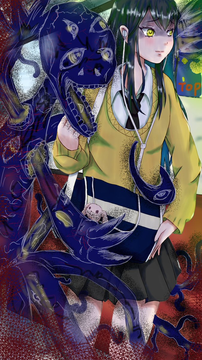 Lately I've been watching Mieruko-chan with some friends. It's about a girl who can see ghosts. This is how it usually goes for her. Anyone else seen it? #Inktober #inktober2022day12 #inktober2022 #見える子ちゃん #MierukoChan