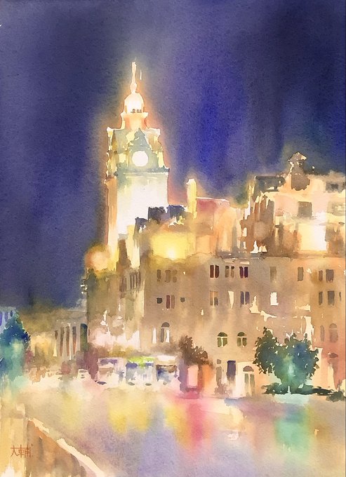 #見た人もなにか街灯をあげる 様々な街灯。 太陽光をよく描くけど人工光を描くのも好きです。 とにかく光るものが好き。 #透明水彩 #水彩画 #風景画 #watercolor #watercolorpainting #watercolorart #watercolour