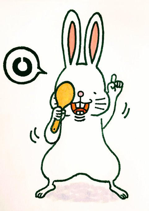 こんにちは!🌈👀 前歯うさぎさんです🐰🥕 更新遅れました🙇💦 【しゃもじで視力検査!! ~全身を使って「上⬆️」~】 #イラスト #前歯うさぎ #イラスト好きさんとつながりたい #絵描きさんと繋がりたい #rabbit #illustration #art #design #視力検査 #しゃもじ #うさぎ #全力