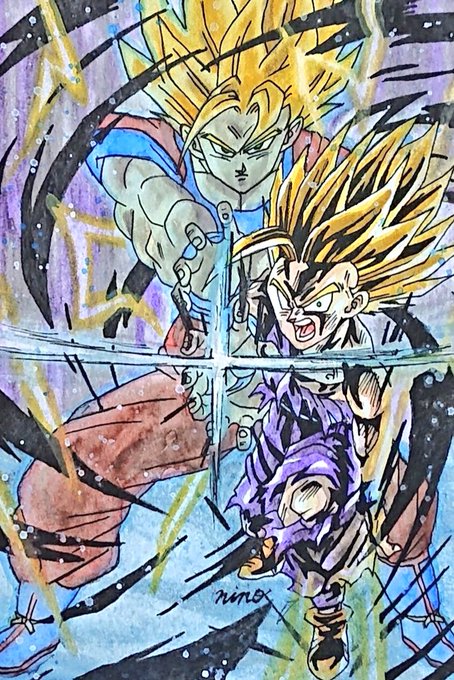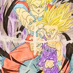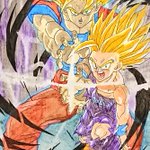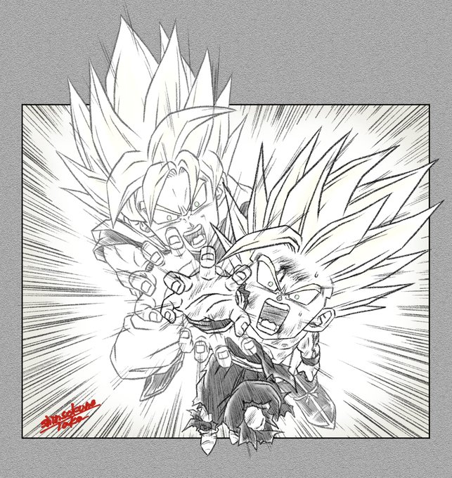 昨日投稿の悟飯2からの〜。 #親子かめはめ波 デフォルメシリーズ😊 悟空の線画を薄めに描いてます😊 #dragonball #dragonballart #スーパーサイヤ人悟空 #悟飯2 #人造人間セル編