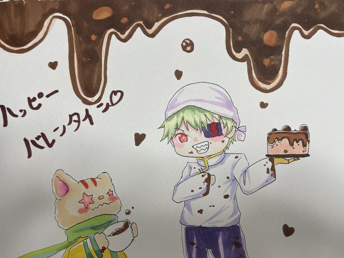 #親愛なるチョコ天才 #ファンクアート #大天才しか勝たん ハッピーバレンタイン!いつもの「カッコいい大天才」とは違う「可愛い大天才」ってテイストで描きました。にしても雑ッ…!!いや、いろいろ立て込んでいて時間が無いんだ…許してください…!